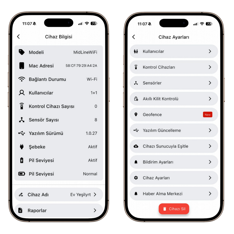Mülkünüzün güvenliğini her zaman, her yerden kontrol edin. DESi Smart Android ve Apple uygulamaları ile kapınız veya pencereniz açıldığında istediğiniz zaman uyarı alın. Ayrıca tüm hareketleri ve olayları anında raporlayın.
