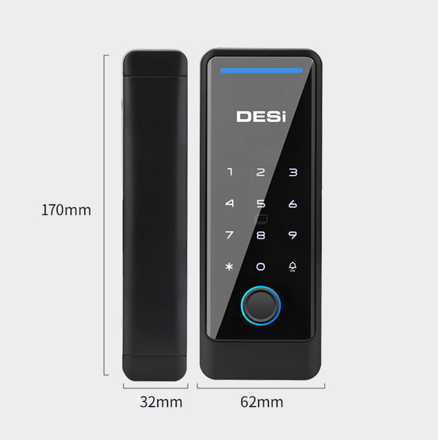 DESi QUiC Q006 Cam Kapılar İçin Akıllı Kilit iOS/Android Uyumlu - Tuş Takımı - Kart Okuyucu - Parmak İzi