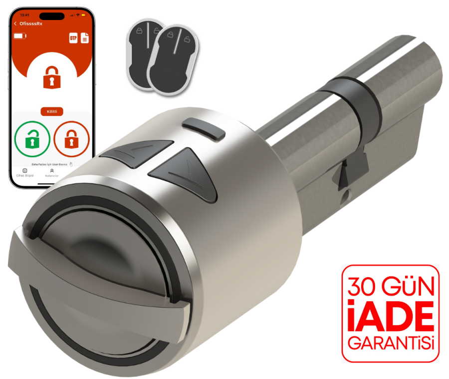 Utopic R akıllı kilitler 70mm (26-10-34mm) silindir ile satılmaktadır. Farklı ölçüler için satın alma sırasında sepetinize 'Utopic R Akıllı Kilit Uyumlu Özel Ölçü Silindir Farkı' ürününü ekleyerek, silindir ölçünüzü seçebilirsiniz.